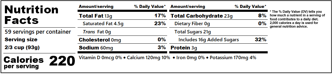 WATER, VEGETABLE OIL (CONTAINS ONE OR MORE OF THE FOLLOWING: PALM, RAPESEED AND COCONUT OIL), SUGAR, SKIM MILK POWDER, CARAMEL RIPPLE (WATER, SUGAR, GLUCOSE, FOOD STARCH, MILK POWDER, SALT, NATURAL & ARTIFICIAL FLAVOURS, ARTIFICIAL COLOURS (FD&C YELLOW 5, FD&C YELLOW 6), CARAMEL, LACTIC ACID, VEGETABLE SHORTENING)), CORN SYRUP SOLIDS, ROASTED ALMONDS (ALMONDS, CANOLA OIL AND/OR SAFFLOWER OIL), STABILIZER/EMULSIFIER (MONO- AND DIGLYCERIDES, GUAR GUM, POLYSORBATE 80 & CARRAGEENAN STANDARDIZED WITH DEXTROSE), NATURAL AND ARTIFICIAL FLAVOURS, ARTIFICIAL COLOUR (FD&C YELLOW 5).